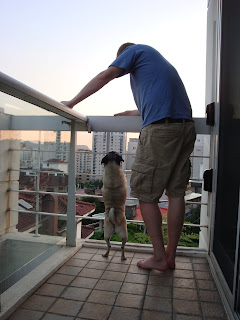 She seems to be adjusting to Seoul life pretty well. She loves her walks, as always, and most people seem to like her as well. She is the only pug I have seen here, but certainly not the only dog. She even met a dog friend, DJ. I think she even gained the friendship of the older Korean maintenance men around the neighborhood, who don't say much, although I walk by them at least 4-5X/ day...and since her name "Ma - Dee" translates pretty well to Korean, most people can call her by name.